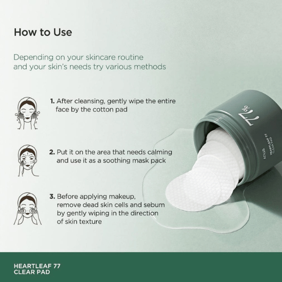 With mild ingredients mainly from Heartleaf, this toner pad may be used every day.