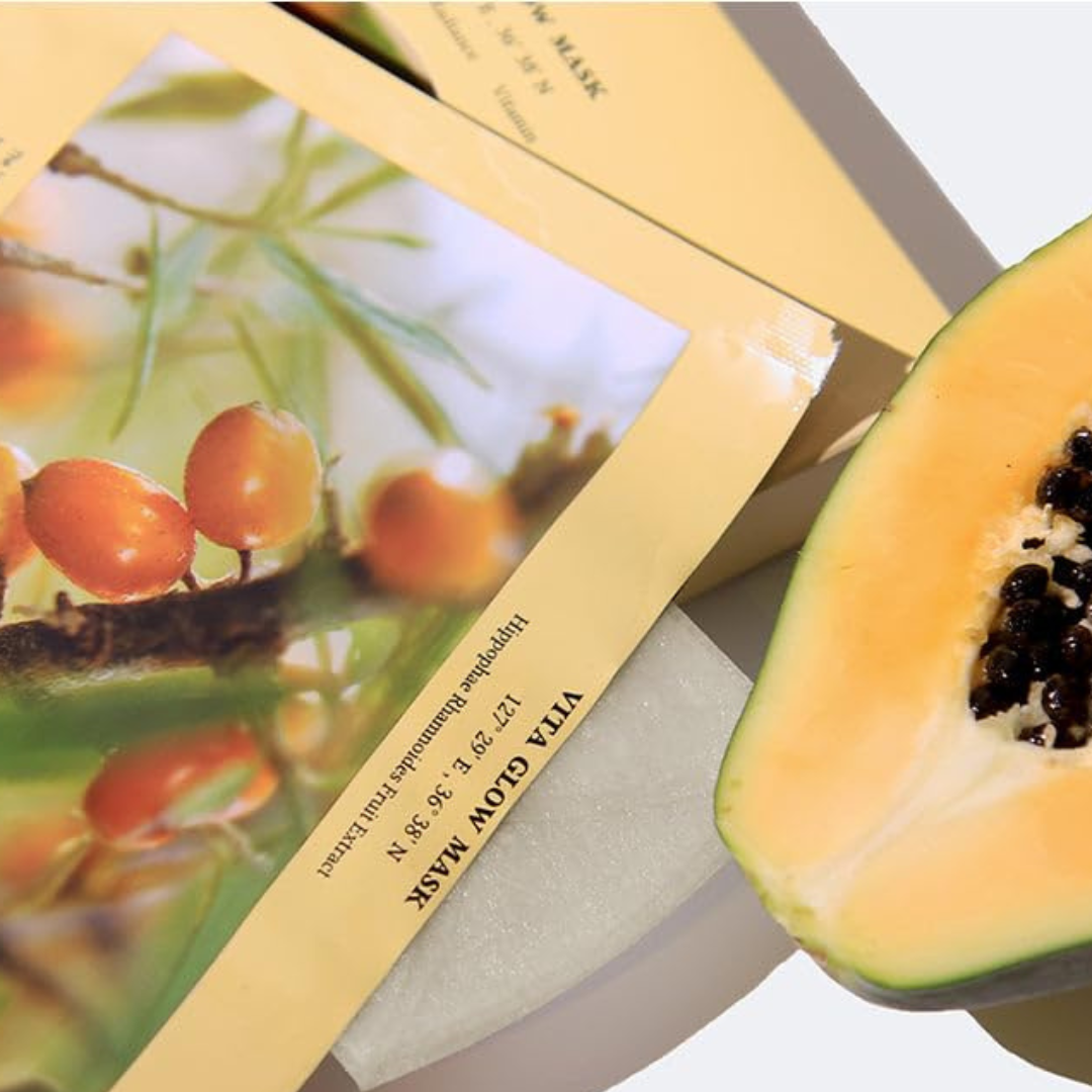Vita Glow Mask is a plant-based sheet mask designed for a dewy complexion. Crafted from 100% Lyocell fabric, it is thin yet resilient, unfolding effortlessly for optimal essence absorption. A unique ironing technique minimizes fabric pilling, ensuring a smooth application without skin irritation. Enriched with vitamin C-rich plant extracts and Niacinamide, the serum promotes skin radiance and reduces hyperpigmentation. The mask also features moisturizing ingredients like allantoin, creating a revitalizing barrier for deep hydration and a nourished complexion.