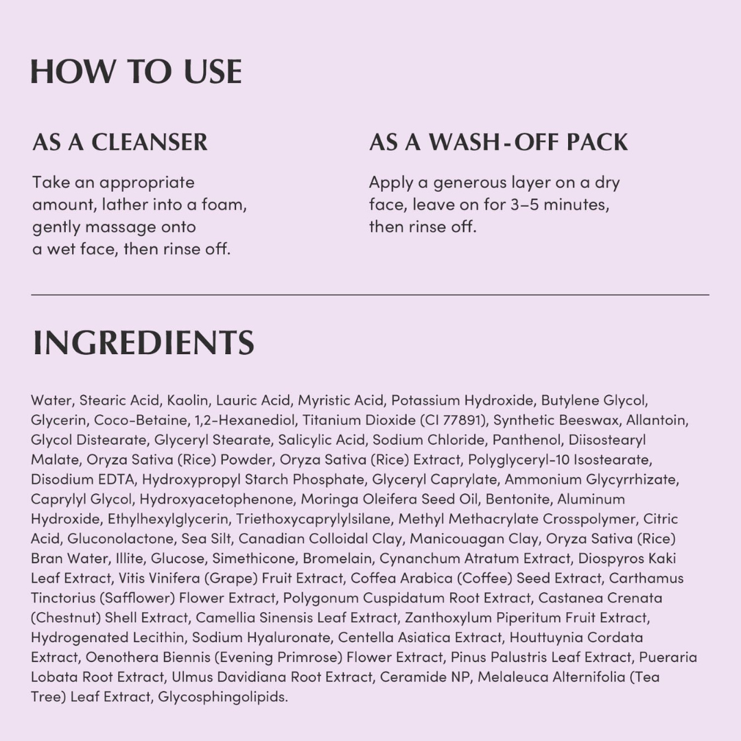this multifunctional product can be used as a cleanser or a wash-off mask pack on days when skin needs a little more attention.