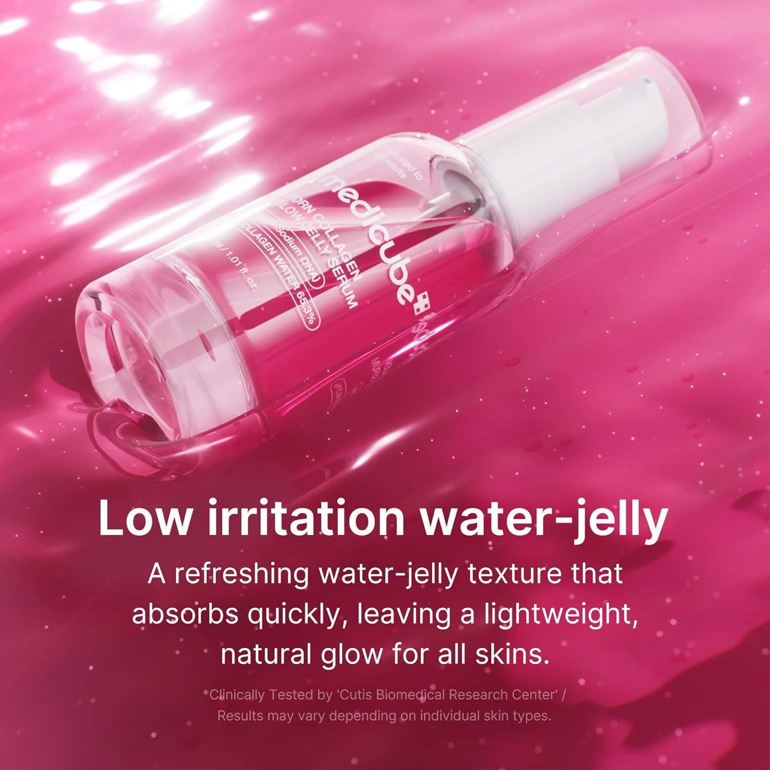 Did you know: Ingredients like rosa damascena flower water and salmon PDRN give medicube's PDRN Collagen Glow Jelly Serum that vibrant pink hue!