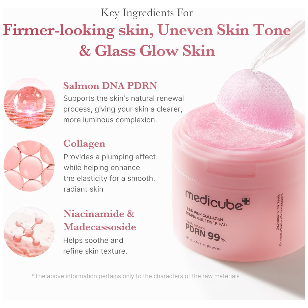 Medicube PDRN Pink Collagen Toning Gel Toner Pad 70 Pads