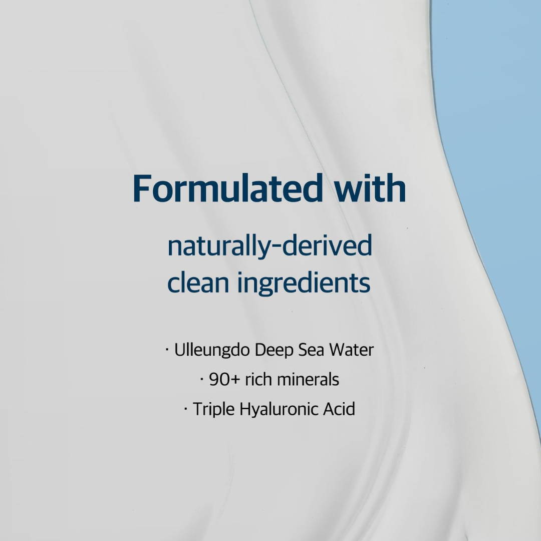 Lightweight moisturizer rich with minerals from Ulleungdo deep seawater and Triple Hyaluronic Acid. Experience enhanced moisture retention with long lasting hydration.